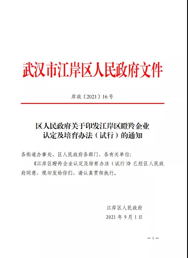 江岸區發布瞪羚企業認定及培育辦法(試行)的通知